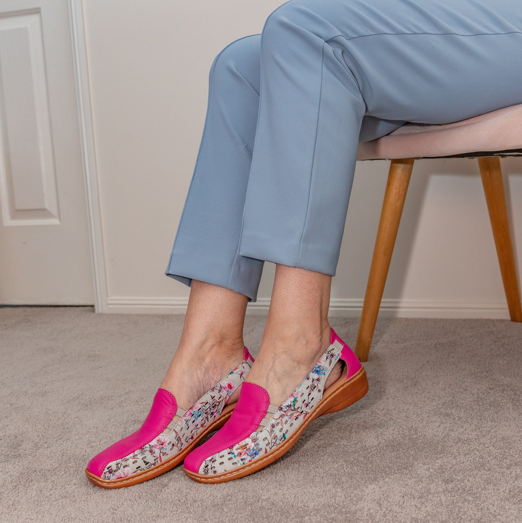 Brighten your step with the Cassini Moana in Fuchsia Botany — a joyful splash of colour wrapped in everyday elegance. Crafted with supple leather and charming perforated detailing, this slip-on beauty combines breathability and personality. The elastic side gussets give just the right stretch for easy wear, while the cushioned interior keeps your feet content from morning to night.