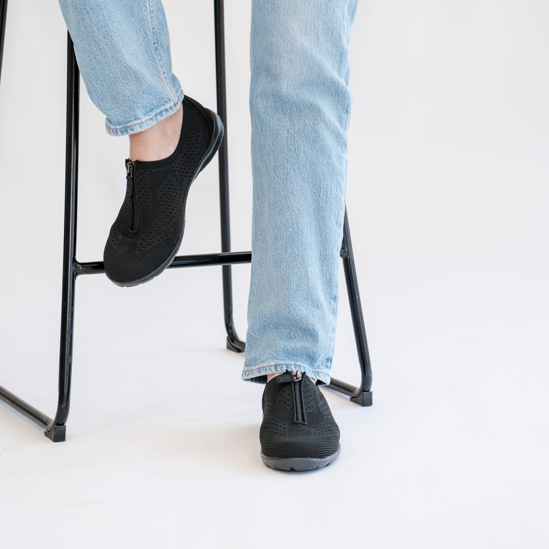 With a soft, breathable mesh upper and a convenient zipper closure, these sneakers slip on effortlessly.