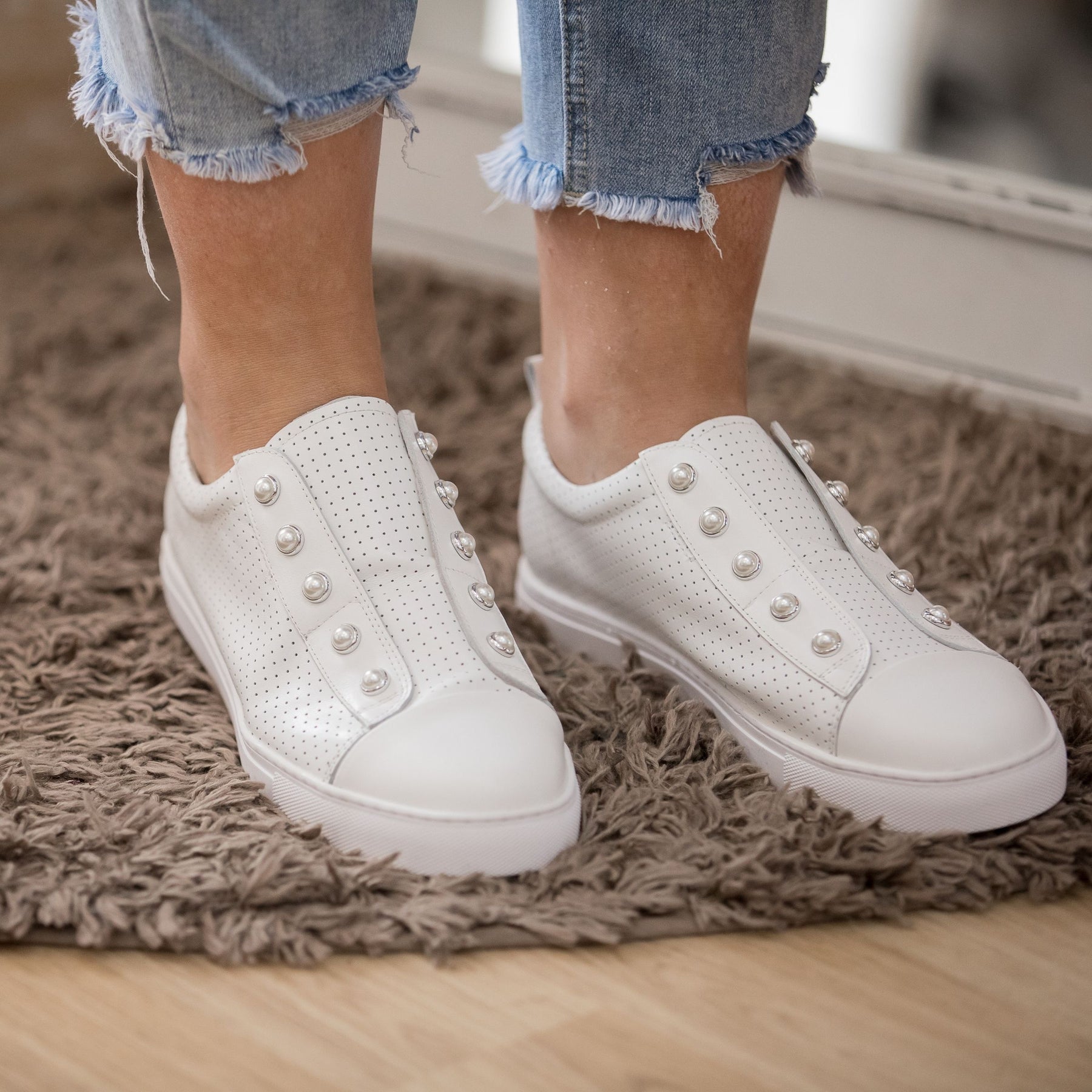 The Pearl slip-on sneaker takes classic white kicks and gives them a playful Hinako twist. With a perforated leather design that keeps things light and airy, these sneakers are perfect for all-day comfort without sacrificing style. A cushioned insole means your feet stay happy, while the clean white look pairs with absolutely everything – from jeans to dresses to weekend wanderings.