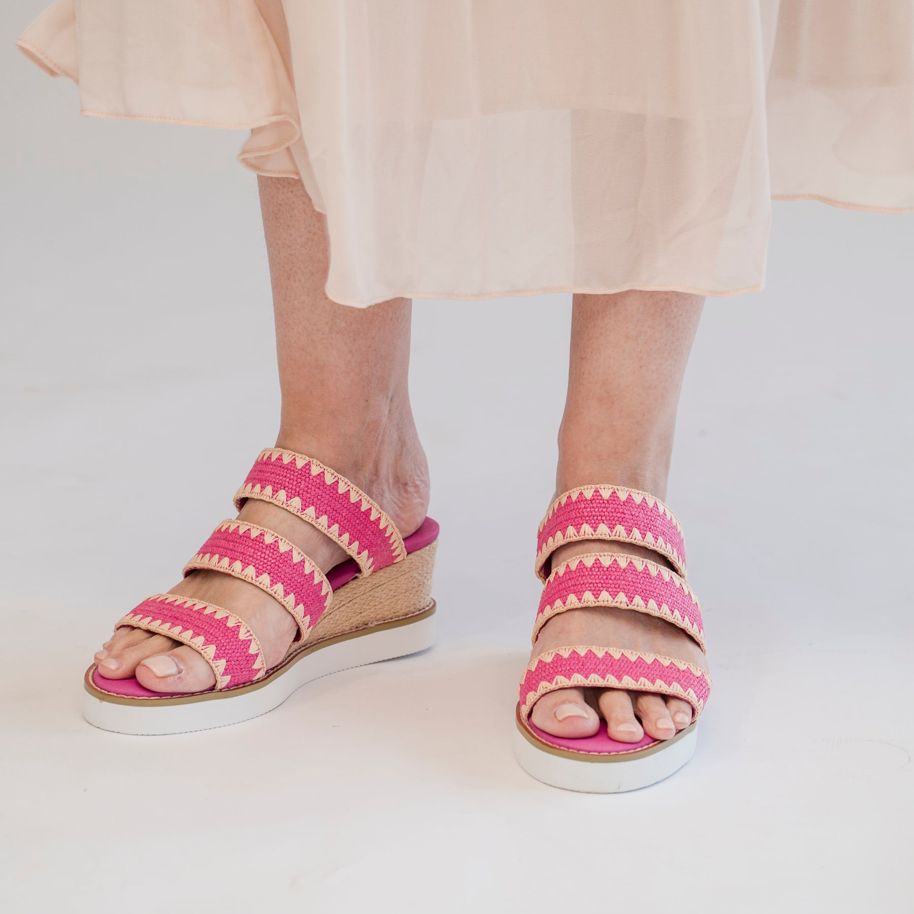 Meet the Hinako Magnetic Fuchsia Espadrille Wedges 💖👡 — basically a confetti cannon for your feet. Bold, bright, and slightly mischievous, these wedges turn every sidewalk into a runway. Slide your feet into the generous straps and suddenly your steps are sassier, your outfit wittier, and your vibe basically unstoppable.