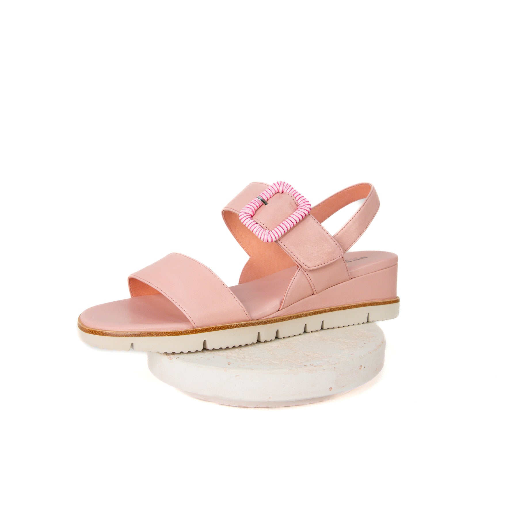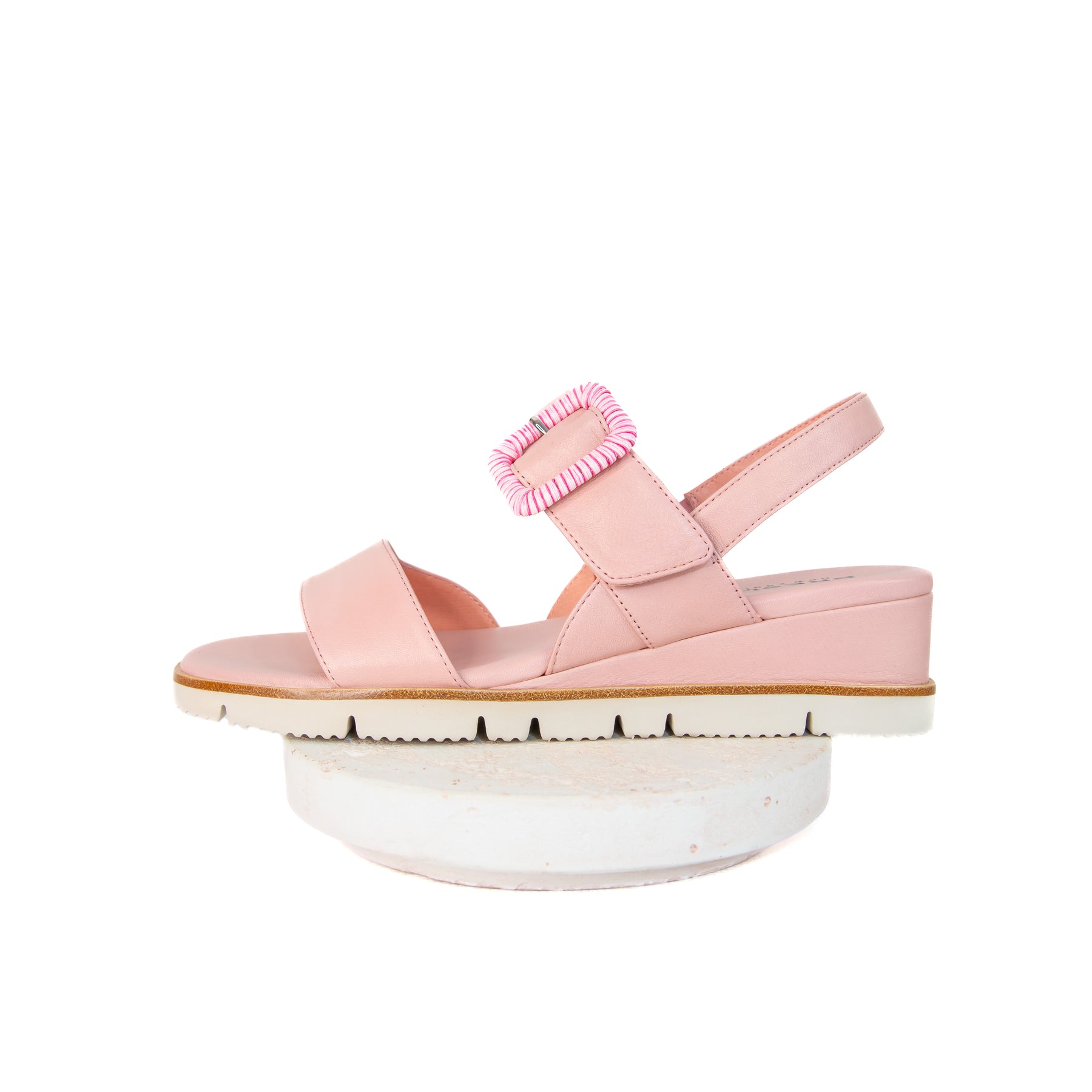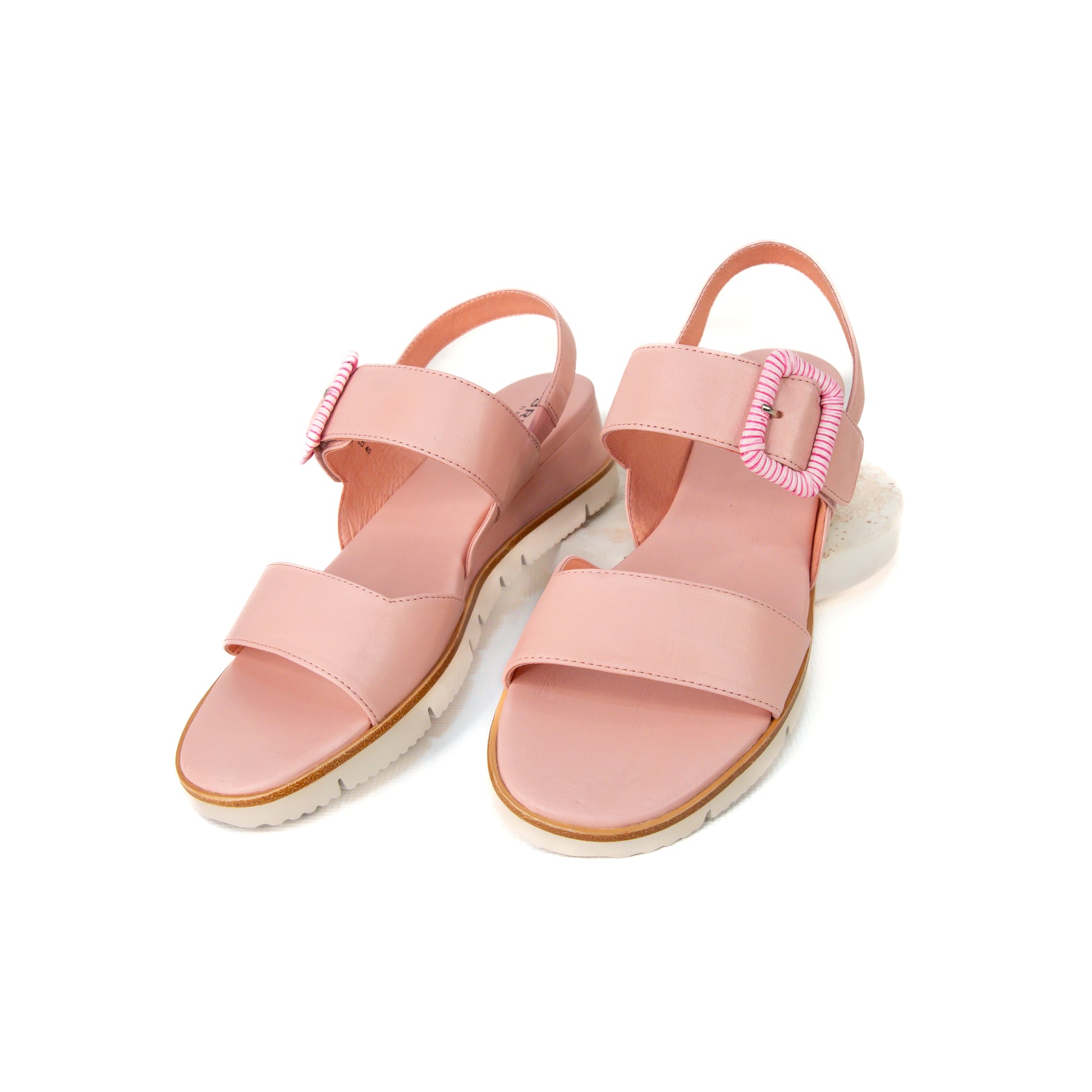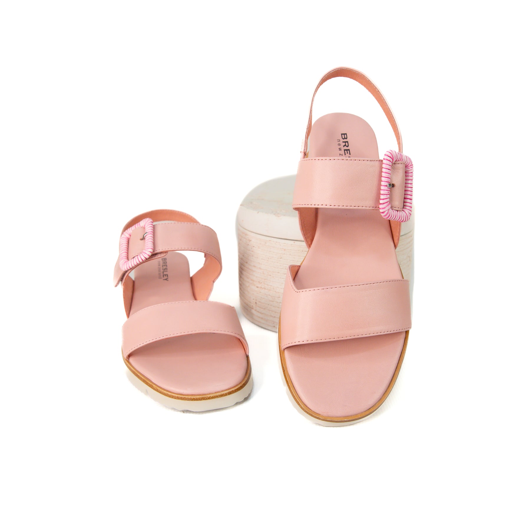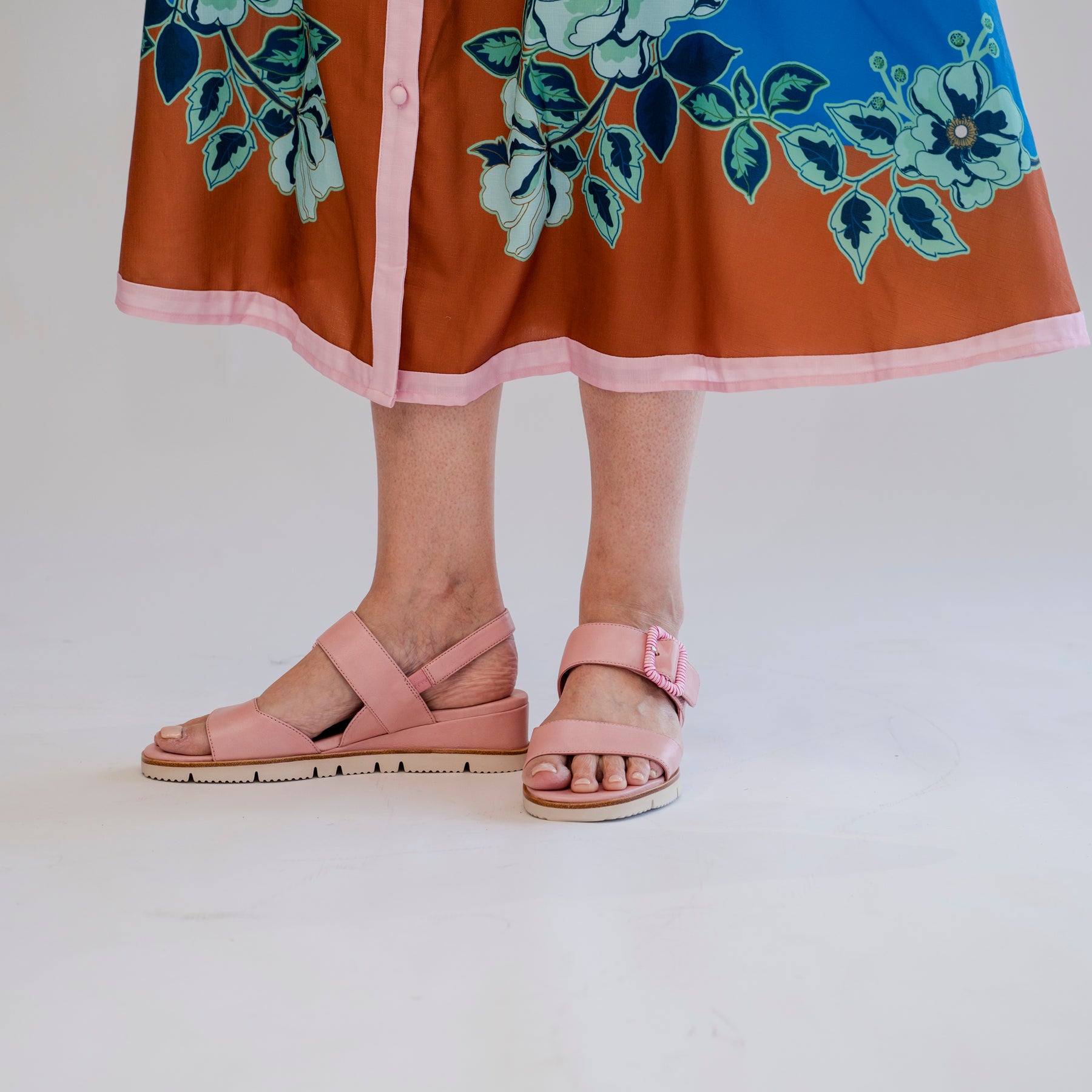Design details that elevate it: a subtle wedge heel (so you get a lift without wobble), cushioned sole, leather upper, velcro fastener, statement decorative buckle.