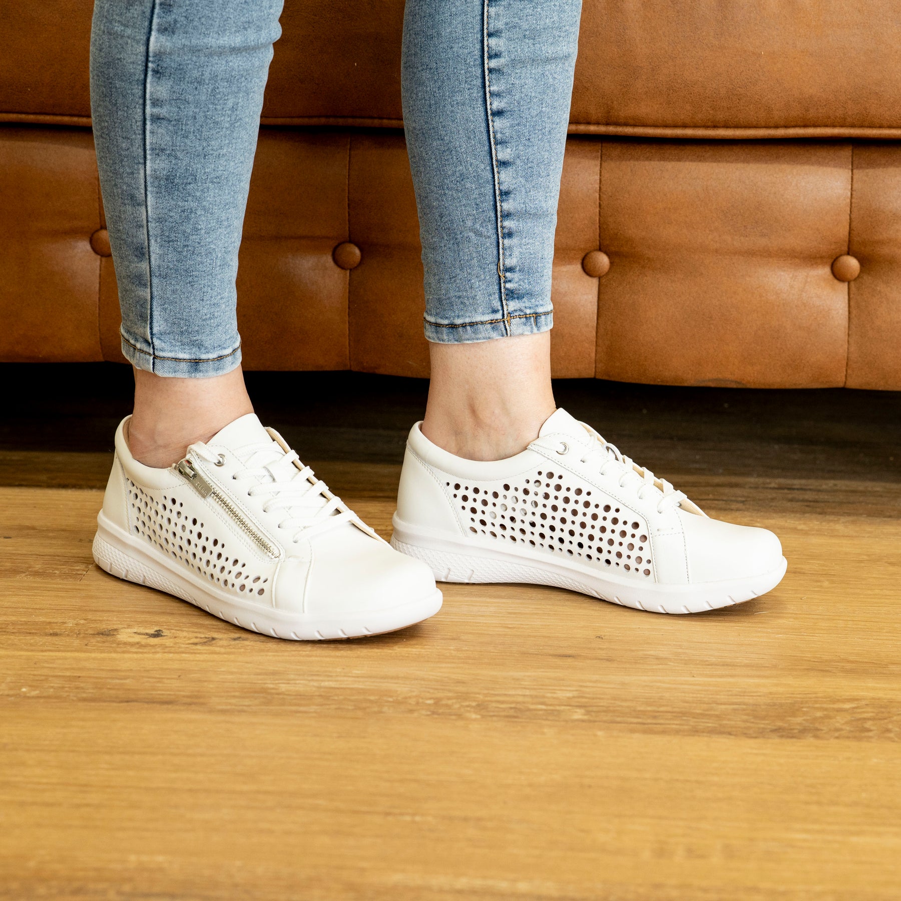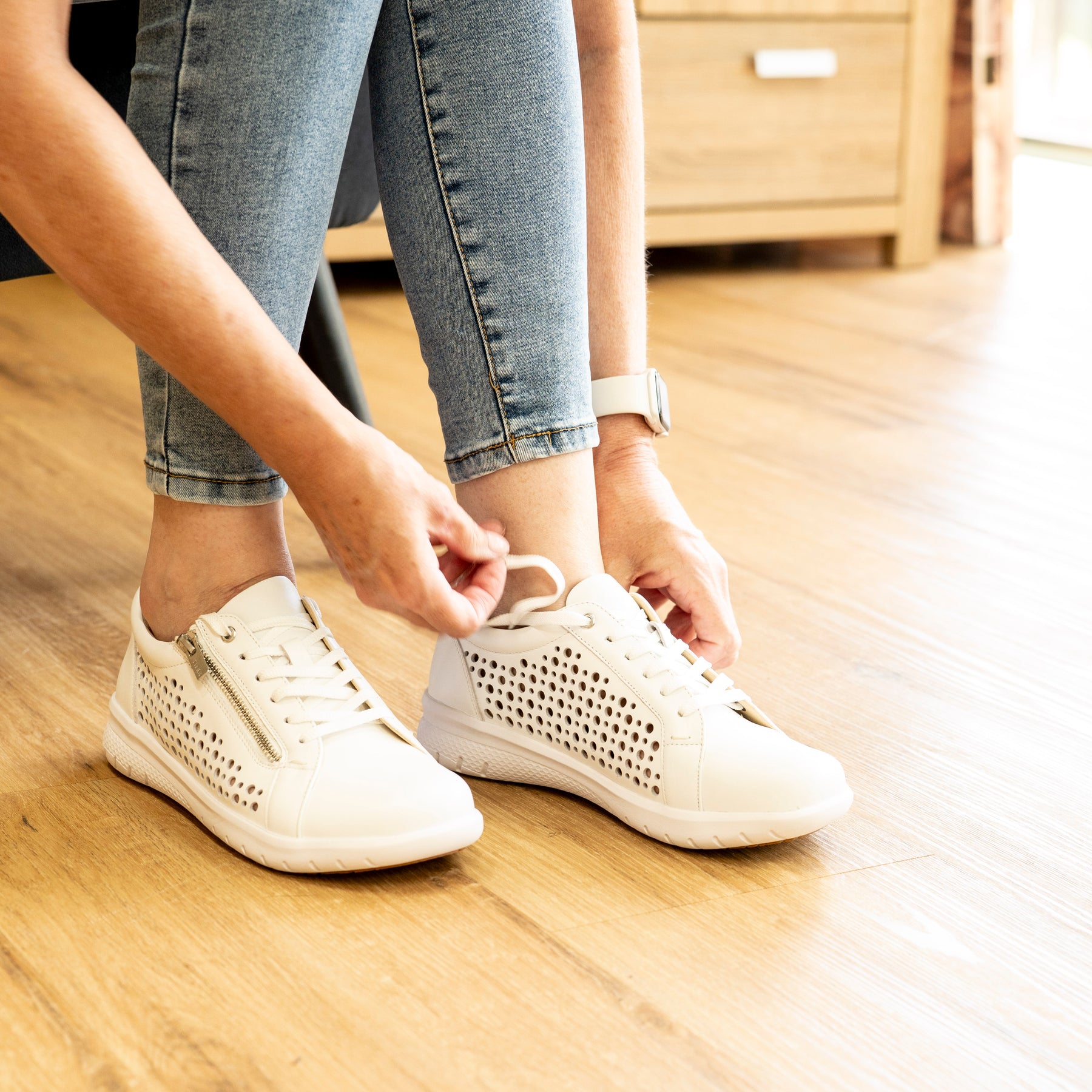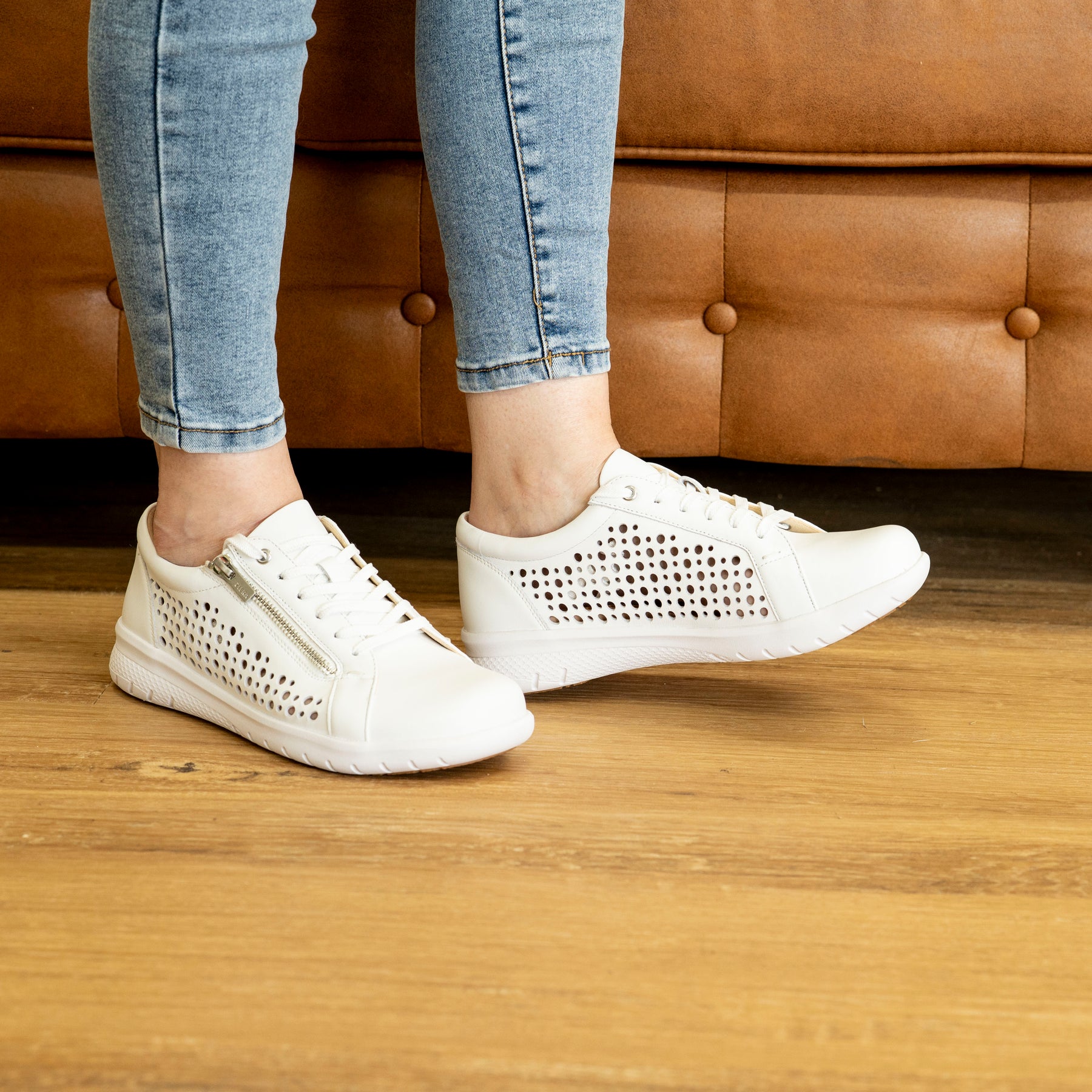 The Ziera Shovo White Leather sneaker blends clean, modern style with all‑day support you can truly feel. Crafted from smooth white leather with breathable laser‑cut detailing, it features Ziera’s Super Support removable footbed for high arch support, a deeper stabilising fit, and cushioned comfort from morning errands to all‑day wear. Designed in Ziera’s extra‑wide (XF) fit with customisable forefoot inserts, Shovo delivers a fresh, sporty look without compromising on comfort — and yes, she’s Australian Podiatry Association endorsed. 🤍👟