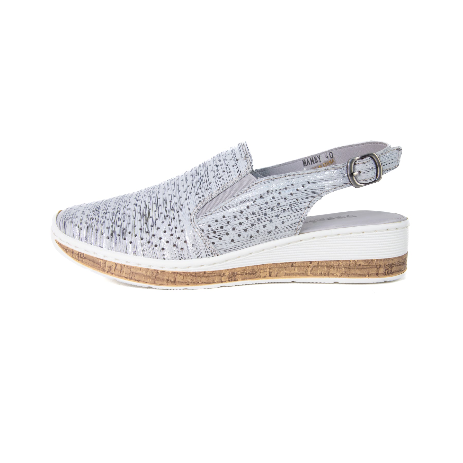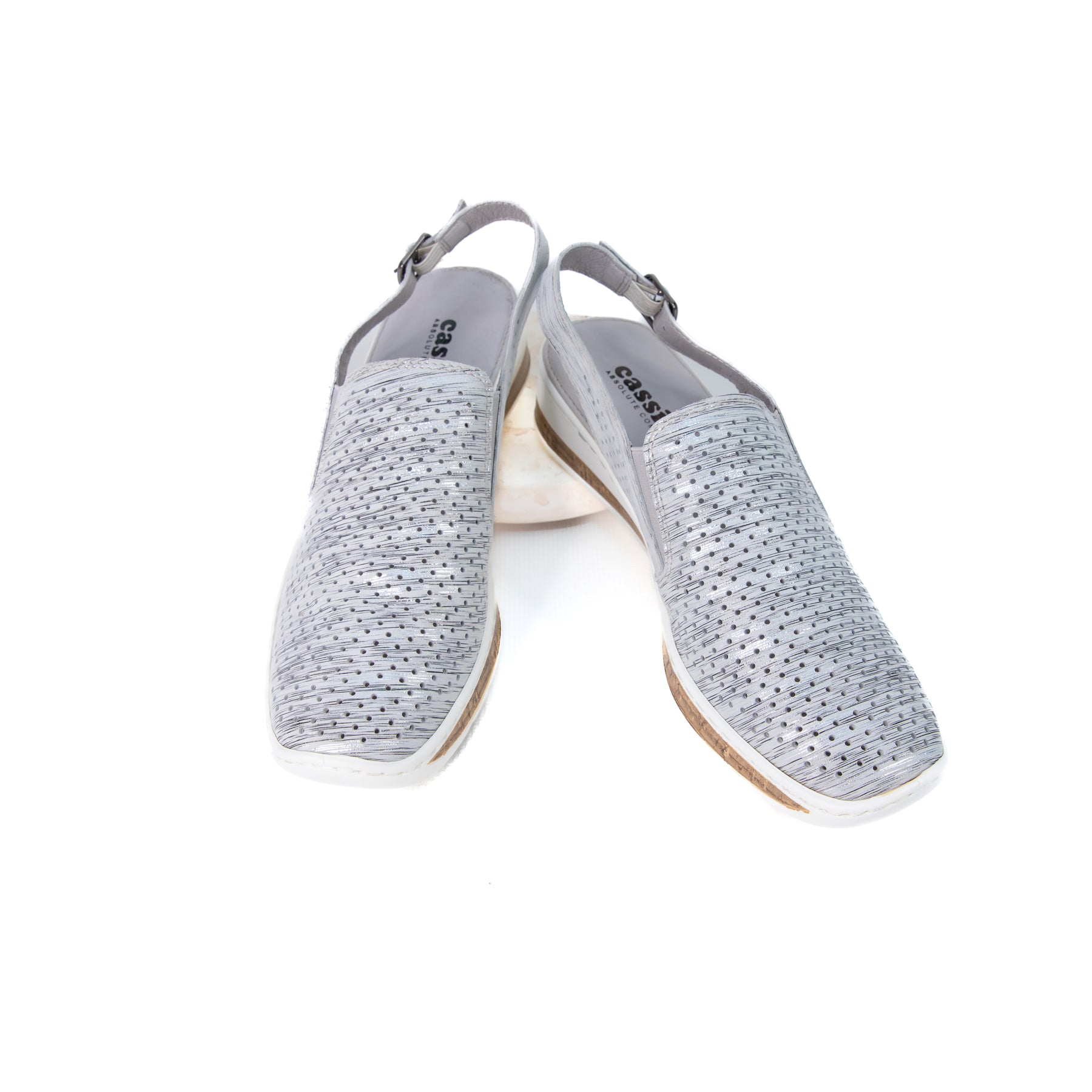 Step out in effortless style with the Cassini Mammy in Metal Pond. This sleek slingback brings together everyday comfort and understated sparkle, making it a must-have for your wardrobe. The soft metallic finish adds a touch of glamour, while the perforated leather design keeps things breathable and light. Finished with a cushioned footbed and flexible sole, the Cassini Mammy is built for comfort that lasts all day long.