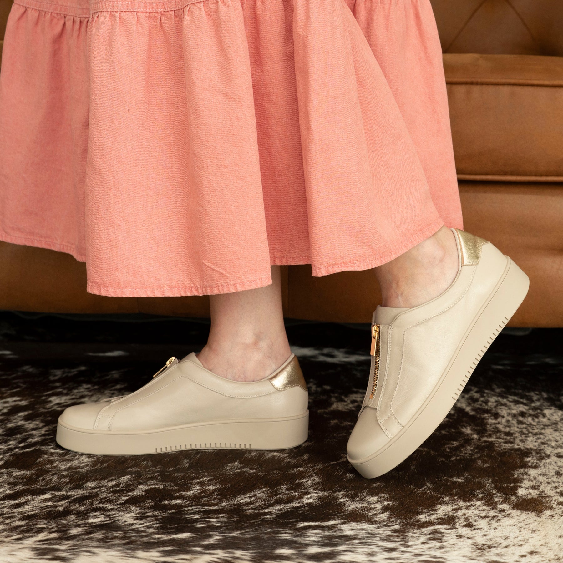 - Elegant gold zip and trim - zip features subtle animal print trim