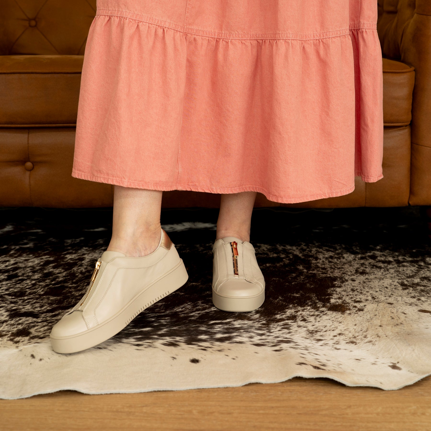 Step into a day that sparkles with every stride in the Django & Juliette Lomaz Almond Pale Gold Sneaker — the sneaker that’s basically a confetti cannon for your wardrobe! 🥳🎉 Wrapped in a soft almond-hued leather that whispers elegance with a cheeky wink of pale gold shine, this kick brings together classic cool with just the right amount of glam.