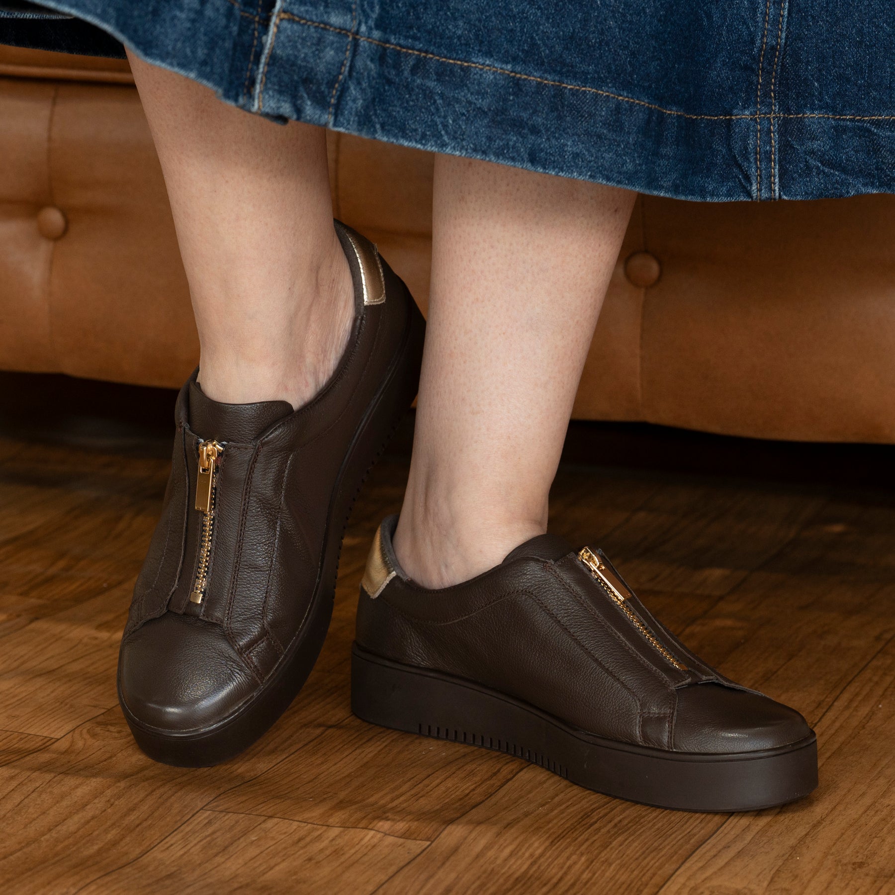 Imagine a pair of kicks that sashays between casual brunch and Friday night sparkle. These sneakers take classic comfort and sneak in a splash of metallic Chocolate-Gold glamour, turning ordinary steps into little style statements. Django & Juliette are beloved for their blend of leather quality and quirky design flair, with each season’s styles crafted with bold details and wearable personality.