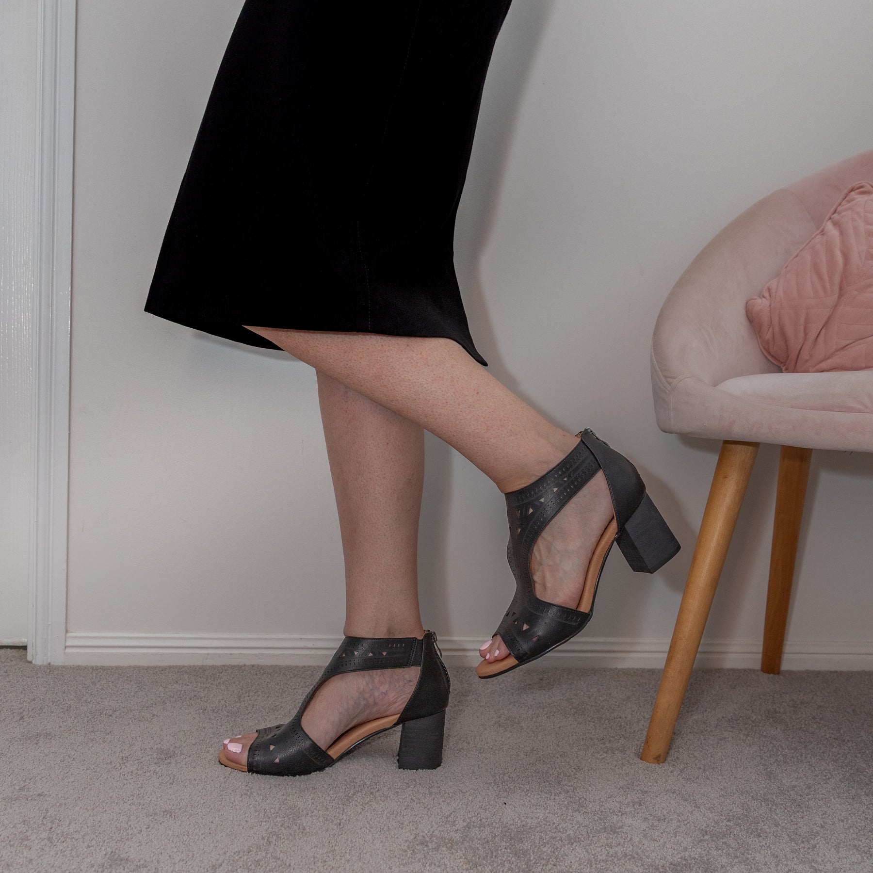 - 6.5cm stacked block heel with non-slip rubber sole