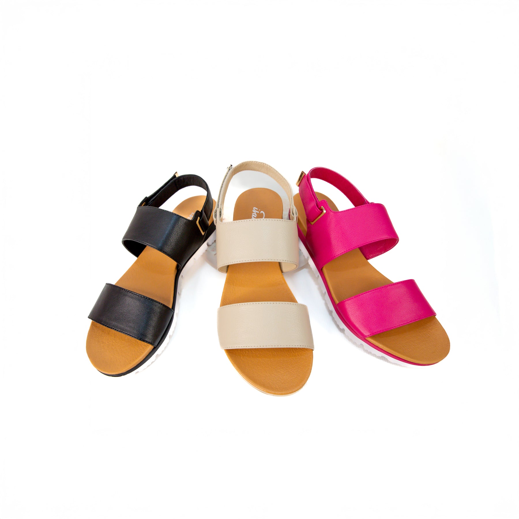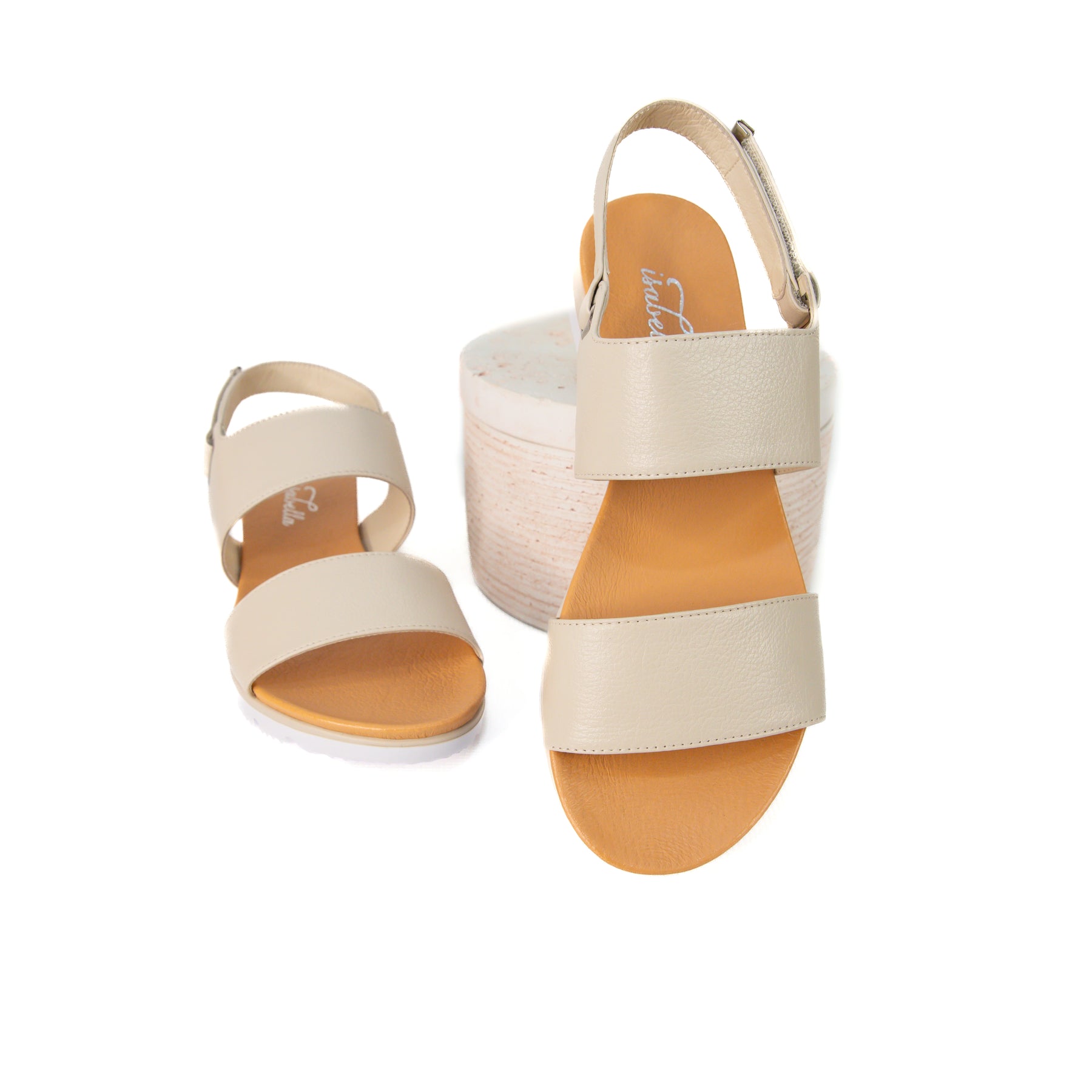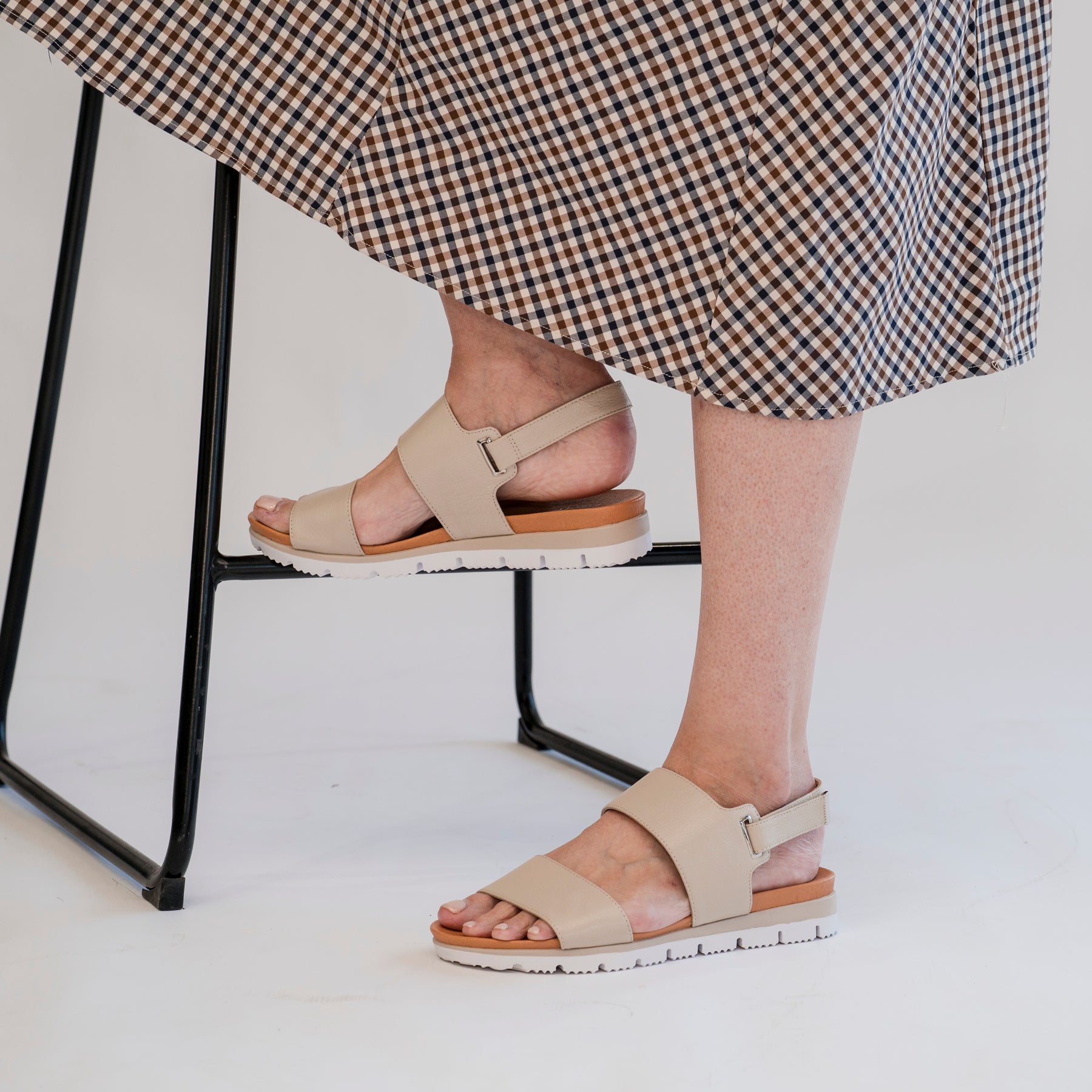 Meet your everyday chameleon: the Chloe in Almond. Soft, creamy-neutral leather straps that whisper sophistication and play nice with everything in your wardrobe. Whether it's light linens, sage greens, pastel blues or crisp whites — this sandal is the understated glue that pulls the look together. Slip-on ease meets polished comfort.