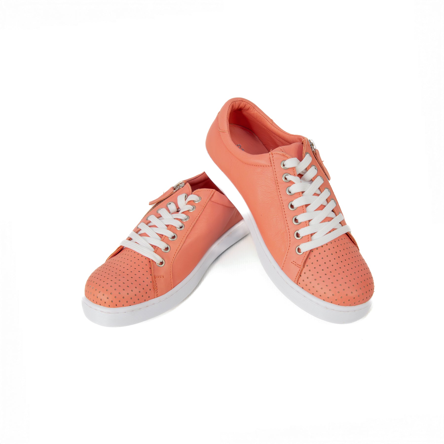 Featuring a perforated toe design for breathability and a contrasting white sole, these sneakers add a modern, feminine touch to any casual outfit.