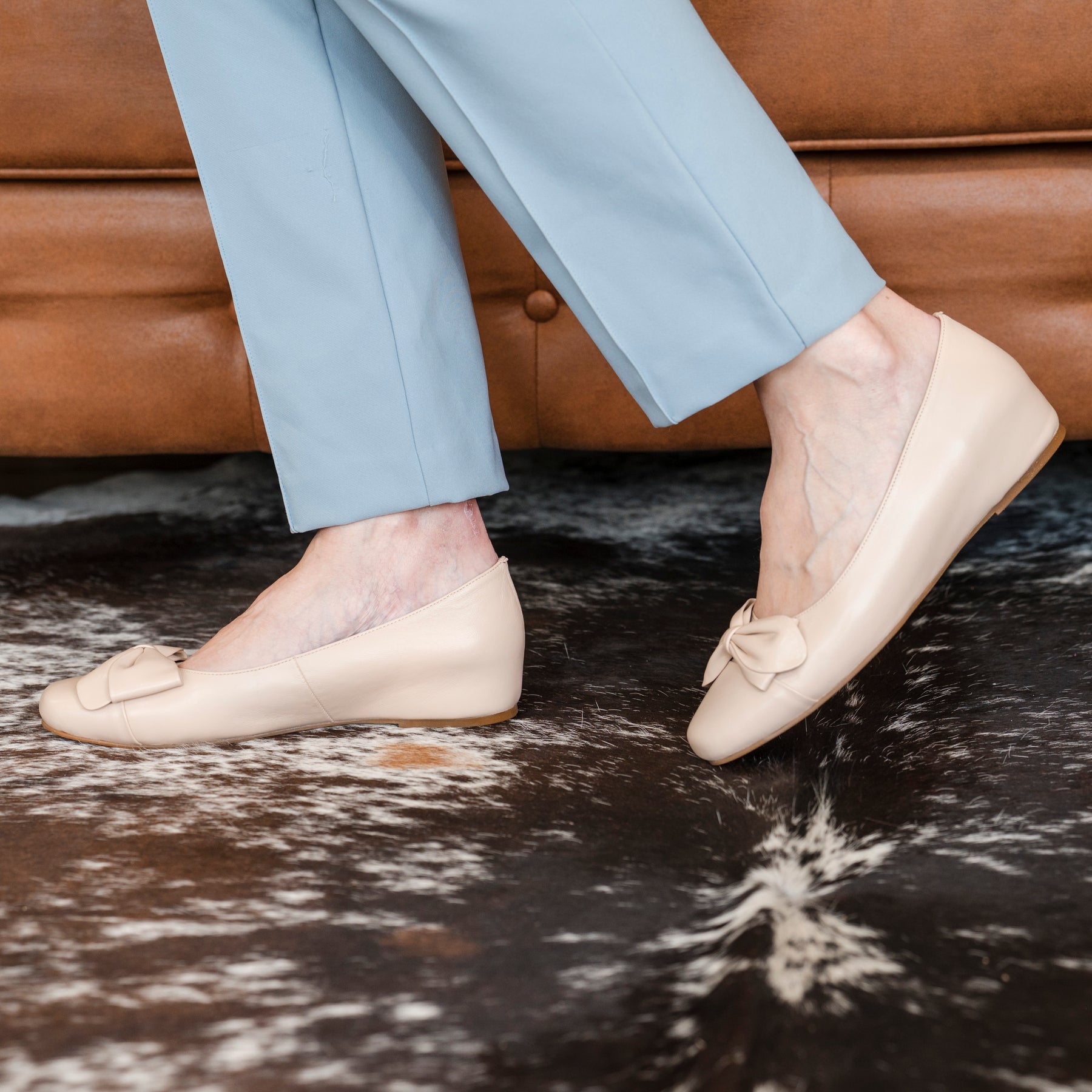 Step into a cloud of creamy sophistication with these beige wedge beauties from Marco Santini — the kind of shoes that make footpaths feel like runways and errands feel like a style mission. Thoughtfully crafted with an elevated hidden wedge sole and gorgeous bow detail, this design strikes the perfect harmony between elegant ease and everyday sass.