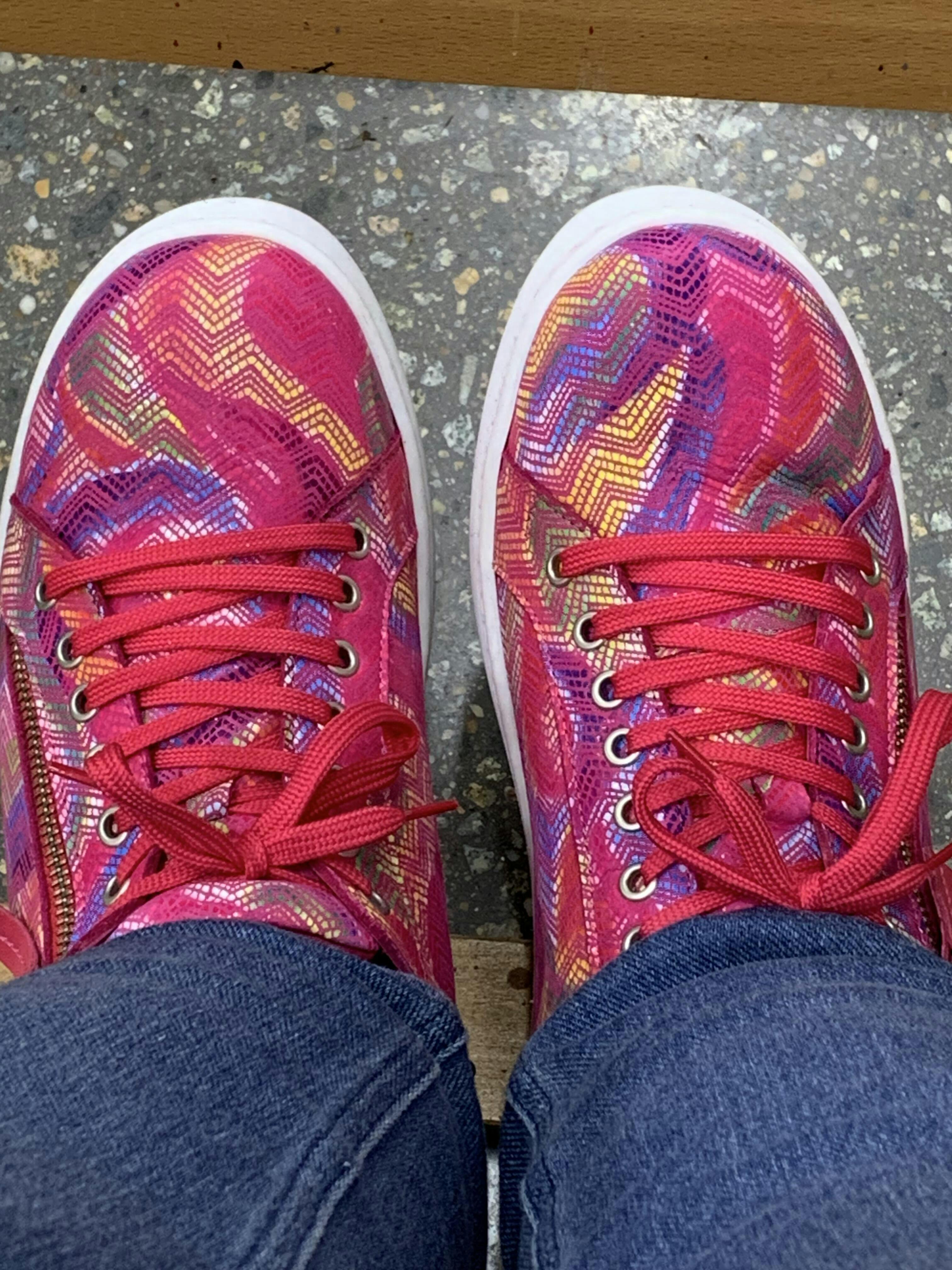 I’ve enjoyed wearing my magenta sneakers for a few weeks now. They are made for my feet! So comfortable and cute to wear all day! I just love them