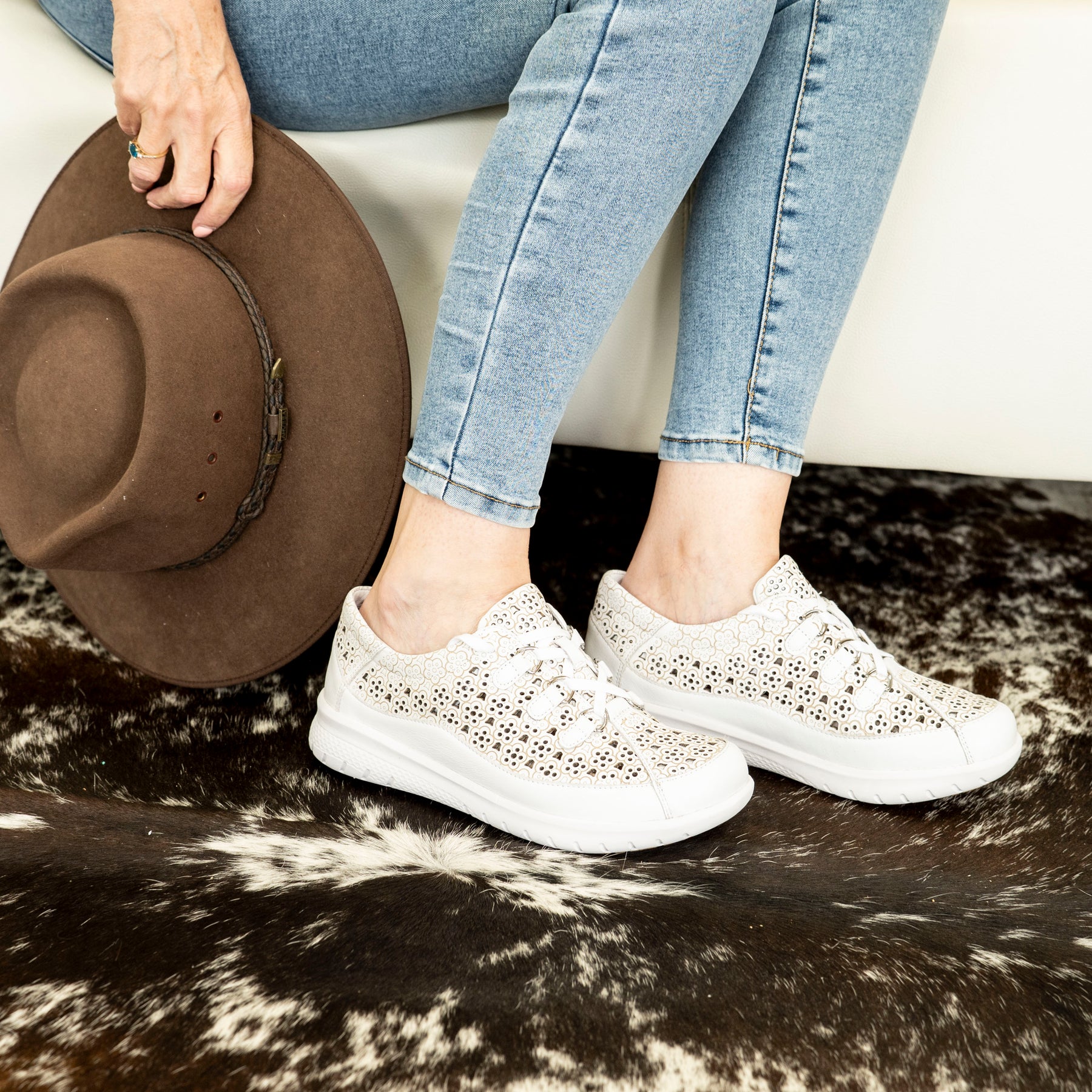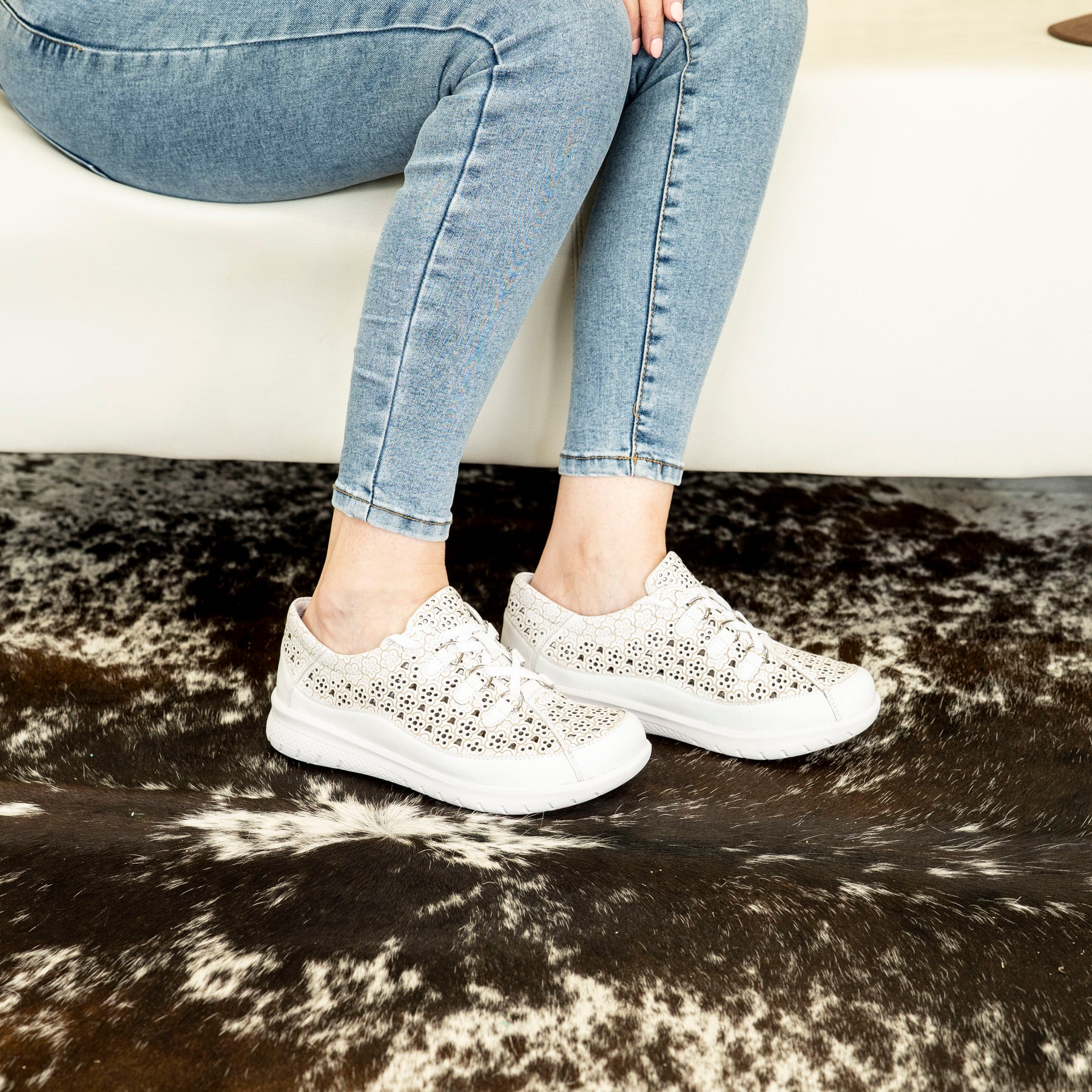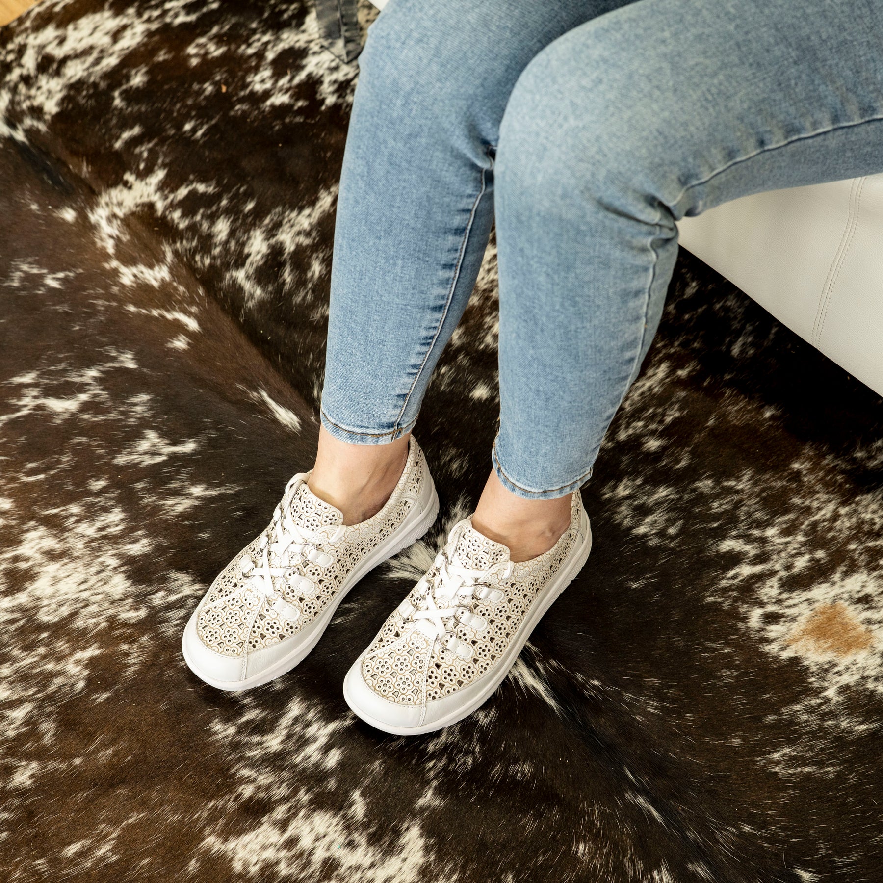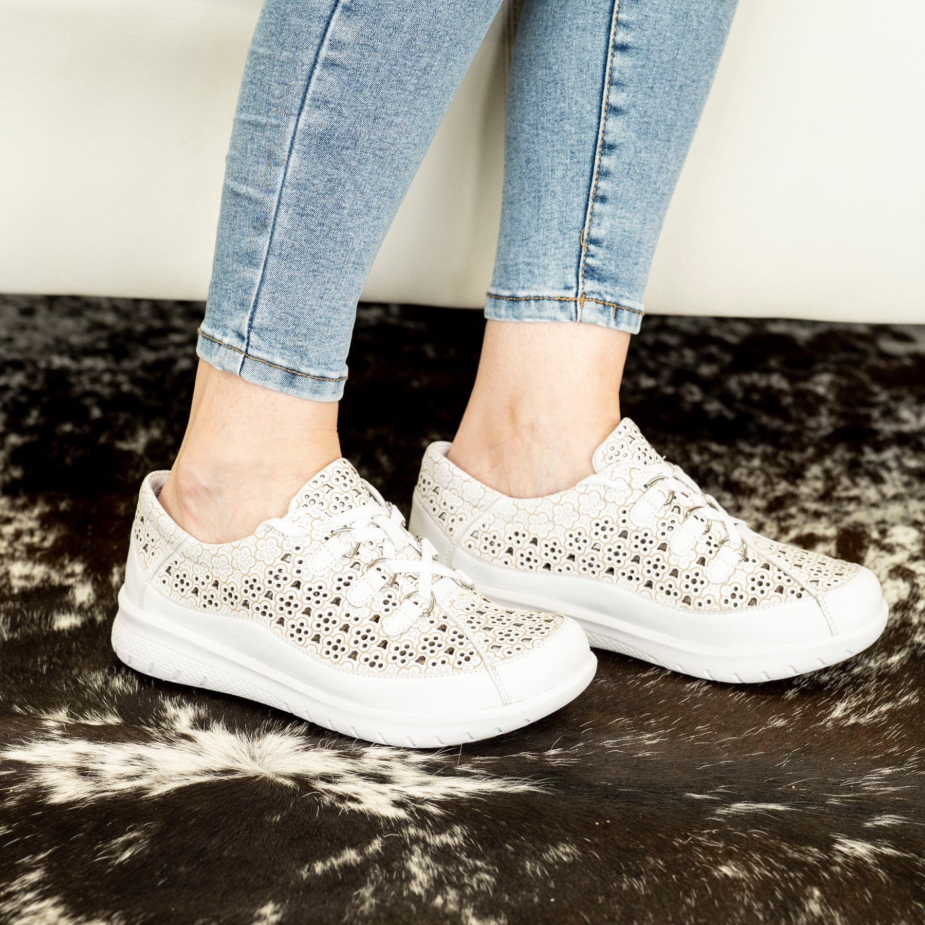 Crafted in soft white leather, Sarmi brings together everyday versatility and Ziera’s signature foot-loving engineering. With an extra‑wide fit, these sneakers give your toes the wiggle room they deserve — no pinching, no squeezing, just happy feet all day long.